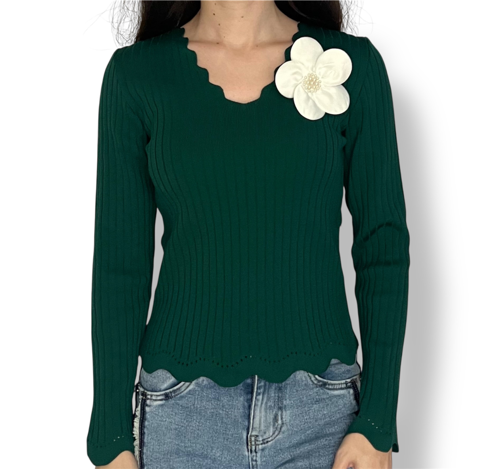 Bluză simplă cu detaliu floare albă, perfectă pentru ținute casual sau elegante. Confortabilă, ușor de asortat.