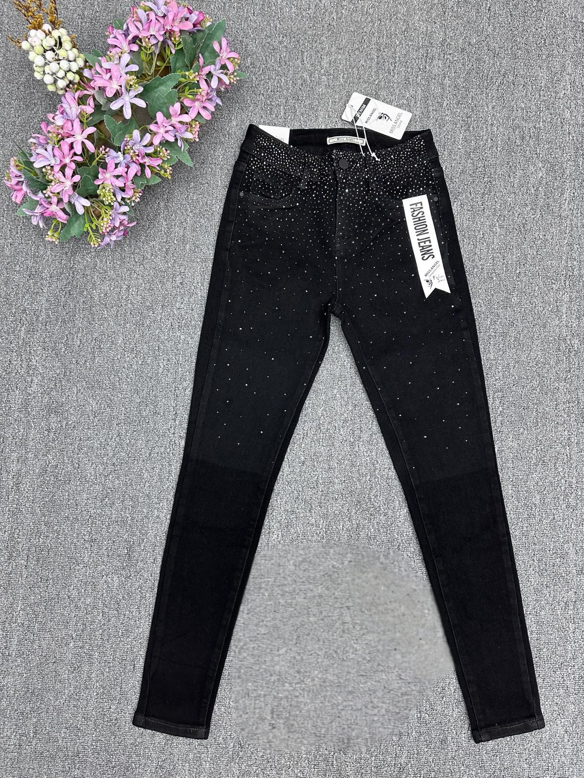Atrage toate privirile cu acești blugi skinny negri cu strasuri, creați pentru femeile care iubesc combinația perfectă între confort și rafinament. Croiala mulată evidențiază frumos silueta, iar strasurile aplicate până la genunchi oferă un efect strălucitor și modern, transformând o piesă clasică într-una spectaculoasă.