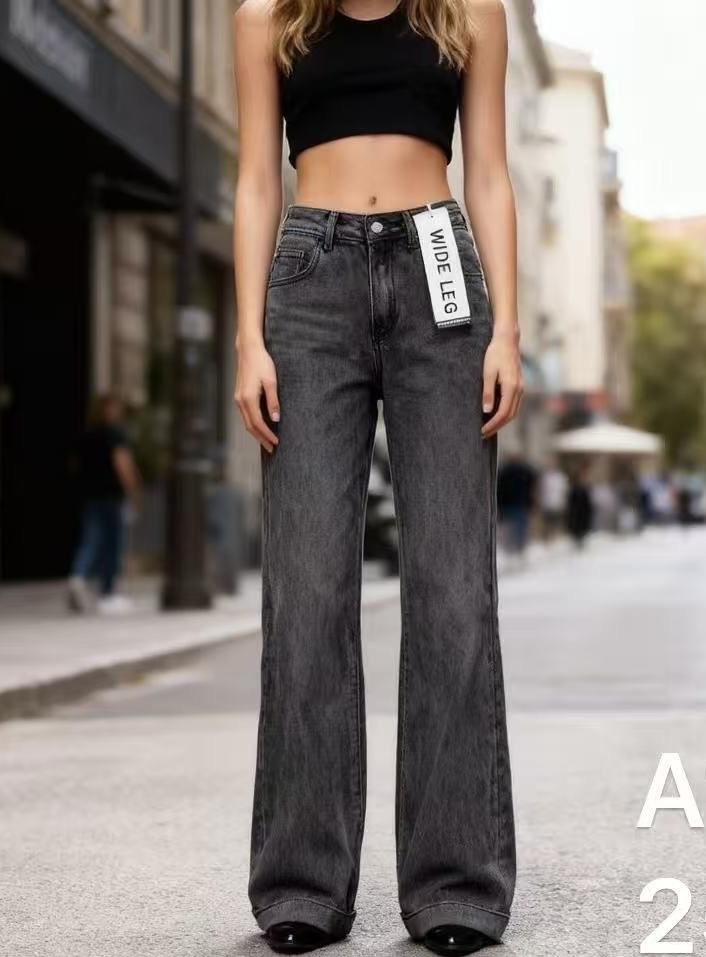 Îmbogățește-ți garderoba cu blugii wide leg gri, creați pentru confort și stil fără efort. Croiala largă și denimul de calitate oferă un look contemporan, ușor de integrat în ținute casual sau elegante. Ideal pentru un stil modern și relaxat.
