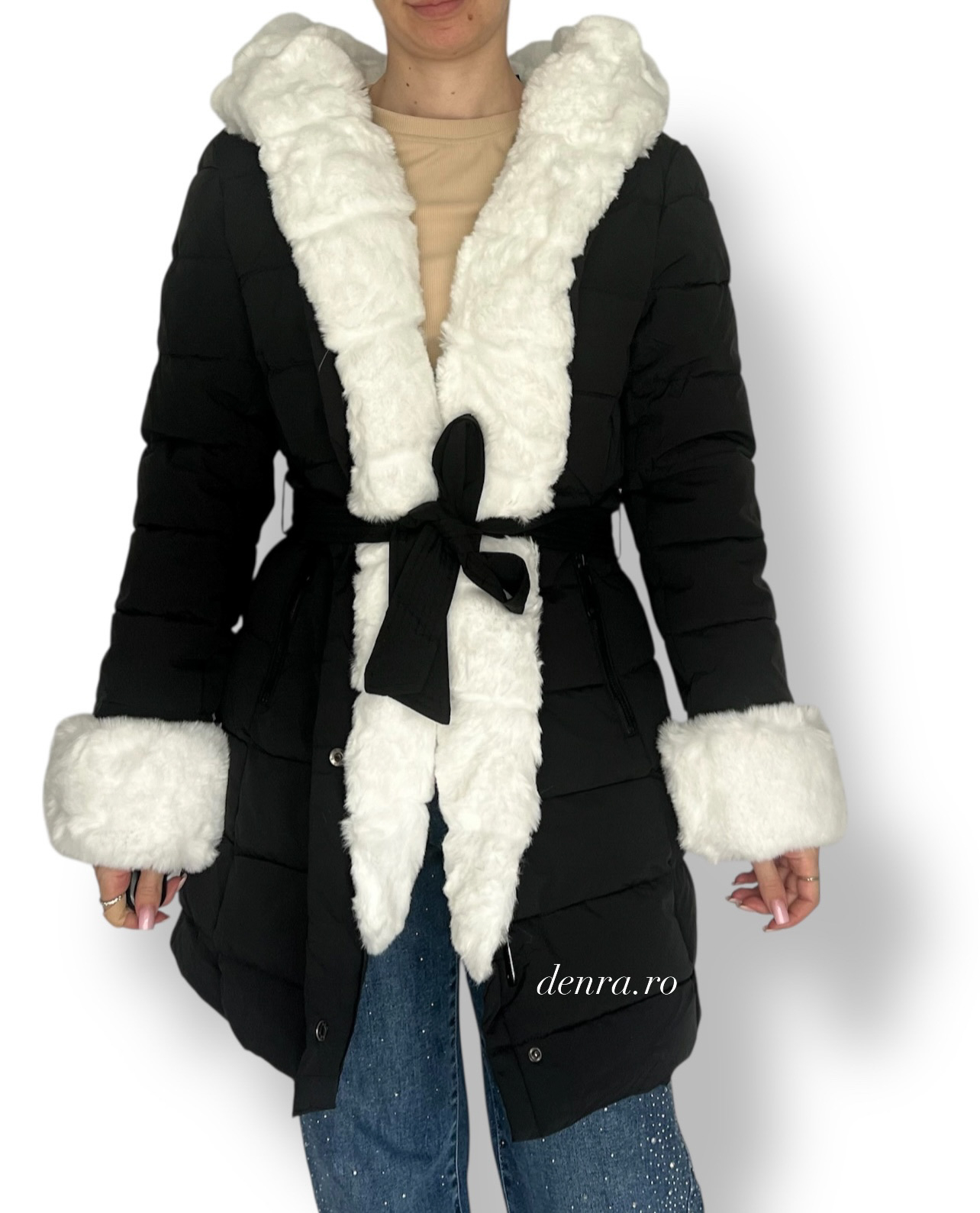 Geacă de iarnă neagră cu blană bogată, ideală pentru un look elegant și impunător în sezonul rece. Material gros, design modern și confort termic superior, perfectă pentru ținute sofisticate sau casual chic.